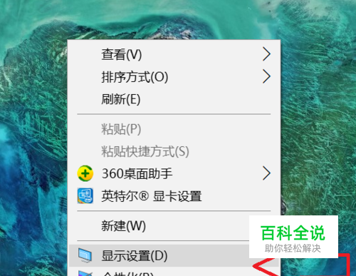 鼠标右键点击桌面,点击【显示设置】或者按键盘D