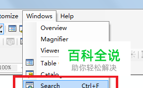 打开ArcGIS软件,点击菜单栏中“Windows”下的“Search”,会弹出搜索窗体。