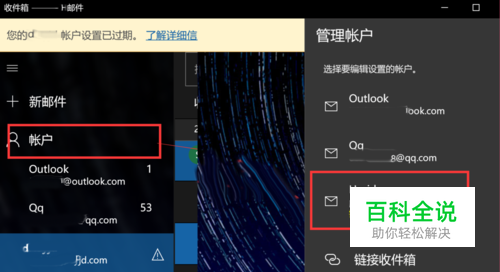 现在我们开始在win 10电脑上,打开自带邮箱。如果把腾讯企业邮箱登入后,会出现三角感叹号,提示“您的XXXX帐户设置已过期。了解详细信息”,这个时候,我们通常会找设置,这是正确的思维。