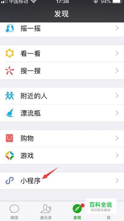 首先我们登录微信后,在发现页面里进入到小程序功能。