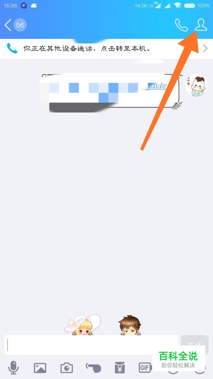 首先打开手机QQ,打开刚刚给自己发搞恶图片的好友的对话框,点击右上角。