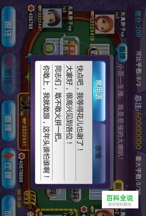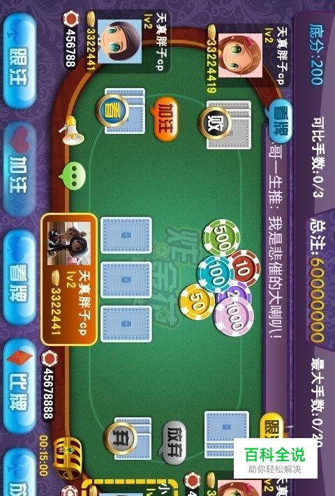 第一步,打开游戏,进入炸金花初级场任意一个房间,注意,此技巧需两个及两个以上的游戏玩家才能进行。