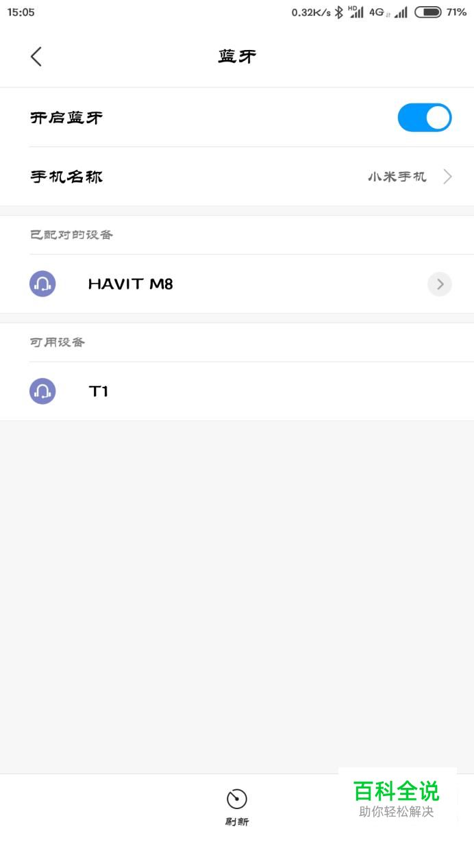 点击下方的刷新按钮刷新一下等待蓝牙耳机被搜索到,然后点击链接自己的蓝牙耳机并且确定配对。