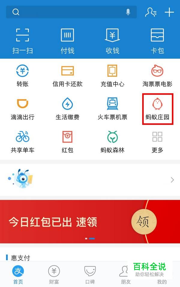 首先打开支付宝,找到蚂蚁庄园按钮,点击进入;