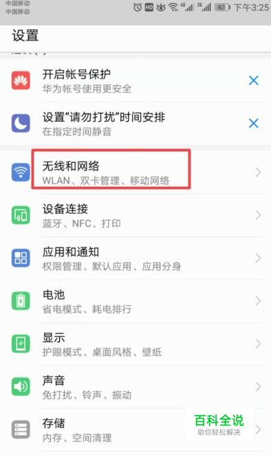 进入设置后,点击无线和网络;