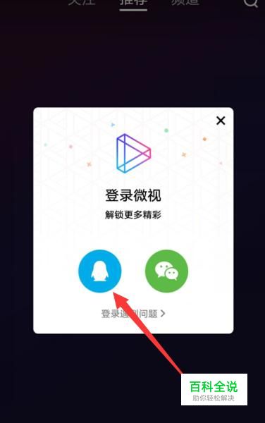 进入之后,选择QQ或者微信登陆的方式,然后登陆微视,如图所示。