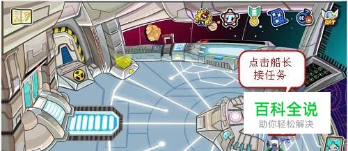 上周,海盗艾里逊来到赛尔号搞破坏,被我们聪明的小赛尔们识破并且打败。如今,艾里逊准备逃走之后,找机会继续来赛尔号搞破坏。小赛尔们怎么回允许这种事情发生呢?因此,本周船长发出命令,追击并击败海盗艾里逊,彻底消除忧患。 来到船长室,点击船长接任务。