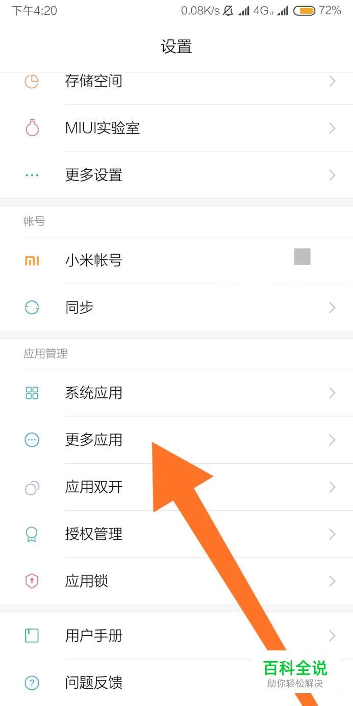 然后找到“更多应用”设置选项,点击进入。