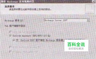 步骤2:在win7弹出的对话框中输入发布规则名 称,如输入“发布Exchange 2007 Web ”,单击【下一步】按钮,弹出选择服务对话框。 接着在【Exchange版本】下拉列表框中选择【Exchange Server 2007】选项,接着在 【Web客户端邮件服务】选项区中选中【Outlook Web Access】|【为Outlook 2007客户端在 exchange服务器上发布附加文件夹】两个复选框,如下图所示。 选中附加文件夹服务