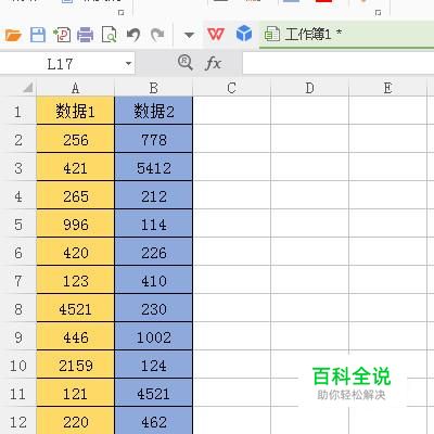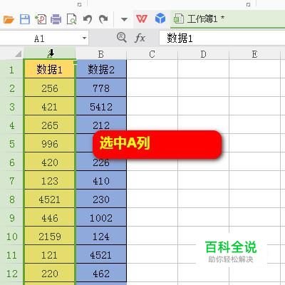 比如下图中的AB两列数据,接下来,把B列数据2变成A列;A列数据1变成B列。