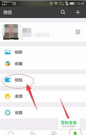 1.在手机桌面上点击微信,登录用户界面,点击“我”里面的那个“钱包”里面如下图所示: