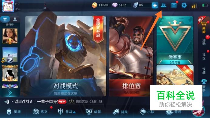 打开王者荣耀,点击箭头所示的朋友图标,即好友系统。