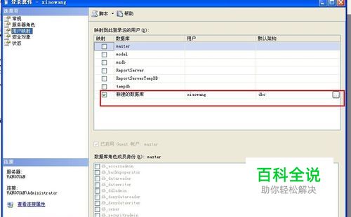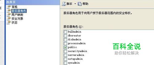 此时,“数据库角色成员身份”列表框中的“db_owner”、“public”两种角色会自动被选中,设置完成后,单击“确定”按钮完成新登录名的创建