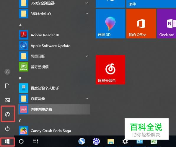 首先,我们点击电脑左下角的微软按钮,弹出的界面,我们点击设置;