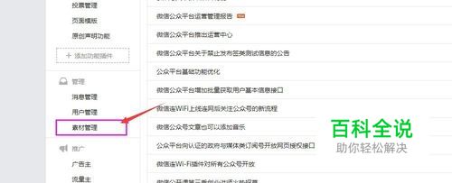 微信公众平台入口,输入账号信息登陆进入后台,点管理-素材管理,如下图所示。