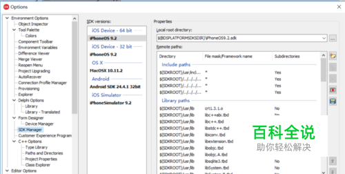运行RAD Studio 10 ,打开Mac OS X 10.11 系统,运行PAServer17。在RAD Studio 10开发环境中,打开第一幅图的设置界面,添加需要的SDK即可。