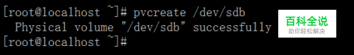 使用pvcreate /dev/sdb命令将物理存储介质(The physical media)这里指系统的存储设备:硬盘,如:/dev/hda、/dev/sda等等,是存储系统最低层的存储单元转换为物理卷(physicalvolume),物理卷就是指硬盘分区或从逻辑上与磁盘分区具有同样功能的设备(如RAID),是LVM的基本存储逻辑块,但和基本的物理存储介质(如分区、磁盘等)比较,却包含有与LVM相关的管理参数。