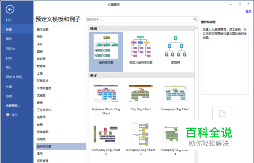 2. 在开始页面,点击组织结构图模板 分类列表。