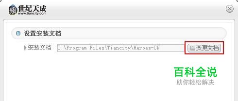 2.升级补丁无法自动识别玩家的游戏安装目录,请玩家点击下图红框内的“变更文档”按钮手动选择安装目录 例如玩家电脑上的游戏安装目录为“D:\Program Files\Heroes-CN”,则请将升级路径设定为“D:\Program Files\”