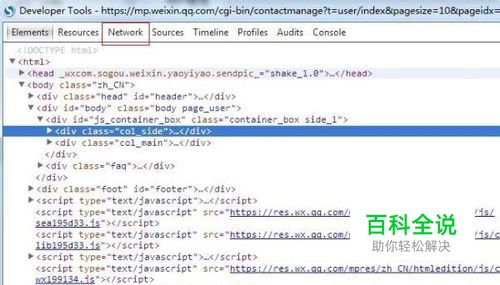 第二步:点击完“审查元素”之后会出来一个网页代码显示的窗口,这里我们只需要再点击里面的“NetWork”按钮就可以了。如图所示: