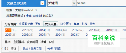 打开中国知网网址,前提是校园网或者个人账号首先登陆, 以web3d为关键词进行搜索,如下图所示为搜索结果