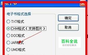 接着会跳出一个制作电子选项,选择合适自己需要的电子书格式,这里的格式非常多,本例选择chm格式。点击确定。