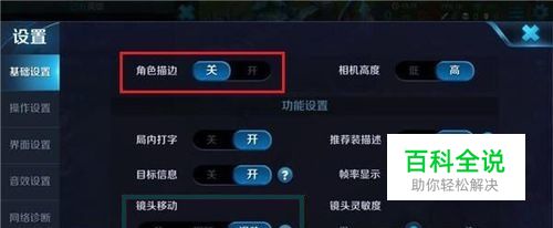 对于基础设置:“角色描边”---关,提高整个游戏过程的流畅度,让你拿3杀5杀更简单哈,如下图所示: