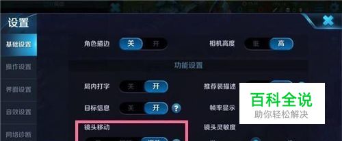 对于基础设置:“镜头移动”---滑动,一般新人都不会设置这个镜头的,这样会导致视野不够广,无法看到其他地方的情况。如下图所示: