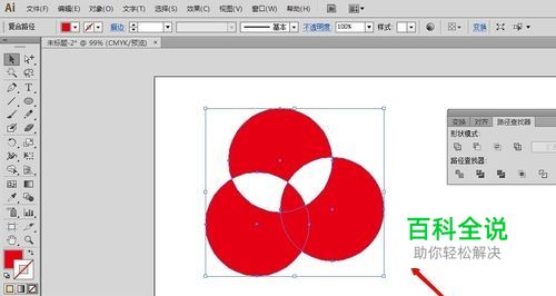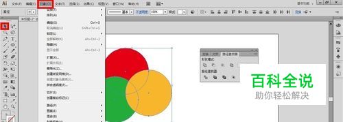 接着,让第三个图形在路径查找器面板里面,创建差集,也就是选中第三个图形,用鼠标单击一下路径查找器面板里面的形状模式的第四个选项“差集”