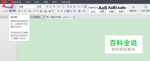 打开word文档,在“菜单”面板下找到“插入”选项,单击。
