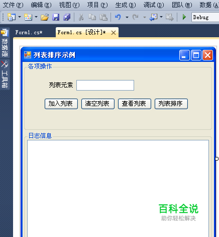 打开Microsoft Visual Studio 2010, 新建名字为【列表排序】的程序。