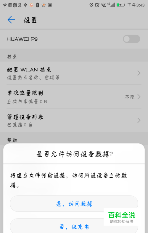 此时手机上出现提示‘是否允许访问设备数据’选择【否,仅充电】