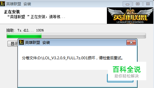 LOL下载好安装时提示7z.003 等文件损坏解决办法