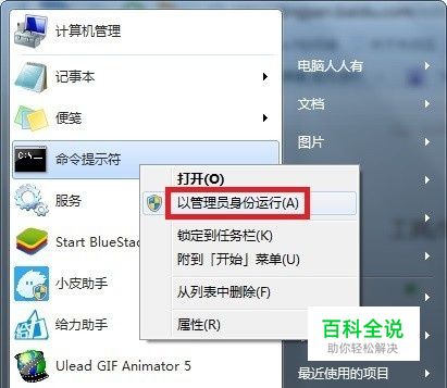Windows7操作系统出错,右键点击CMD→以管理员身份运行