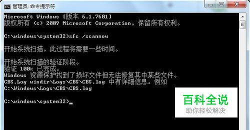 电脑出错,使用命令修复,最终给出提示: