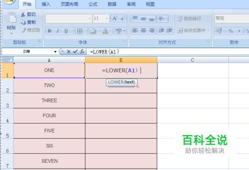 输入之后我们单击要有大写转换为小写的单元格,此时我们单击A1单元格,单击之后再输入右括号“)”,输入完成之后按回车键。
