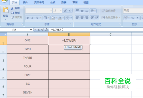 首先我们先打开工作表,打开之后会出现如图所示,这时候我们可以看到A列都是大写字母,那么我们单击B1单元格,单击之后在单元格里面输入=LOWER(。