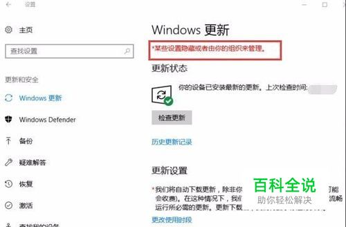 win10更新设置中经常会出现带※的红字说某些设置隐藏或有你的组织来管理,这影响到了美观不说,还妨碍了我们的正常更新。大体来看,这是由于大家电脑里安装的**卫士**管家设置冲突引发的。所以现在来教大家如何去除这些红字。