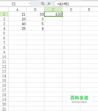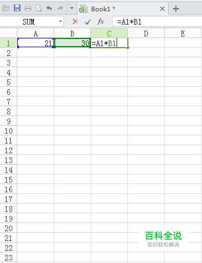 在C1框中输入=A1*B1,然后点击回车,即可得到A1与B1的乘积。