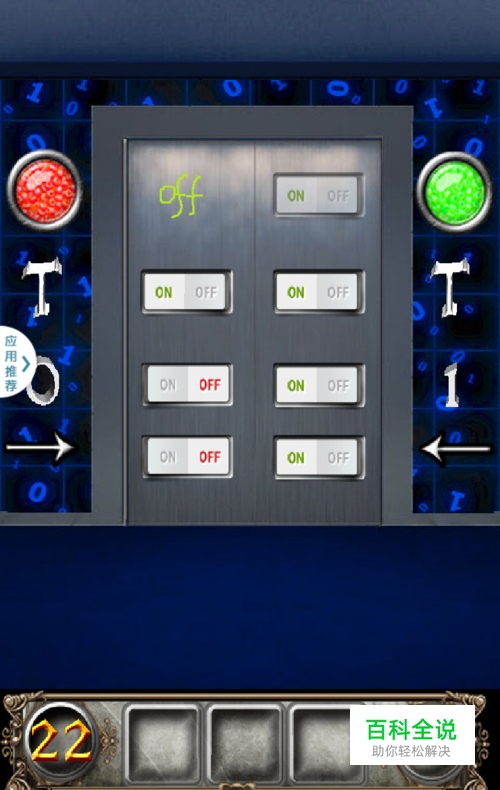30关,连续点右边的电梯按钮,使指针转向右边