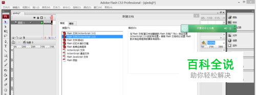 新建一个flash文件(注意:一定要用ActionScript2.0版本)