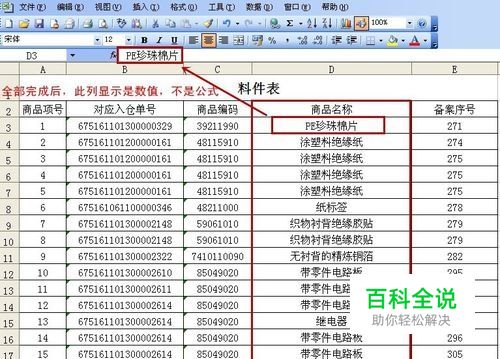 Col_index_num,指要搜索的数据在数据库文件中找到后,引用数据值的所在第几列。 “备案序号”在数据库中,找到对应的“商品序号”后,要将第三列的“商品名称”返回,所以这里我们直接填上例数值即可。 比如,商品序号为"1",数据库中,"1"对应商品名称为“带接头电线”,位于数据库的第3例,这是我们将要返回的数据的所属列数,将”3“填如即可。