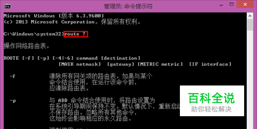 接下来我们所有的操作都是基于“route”命令来实现,可以再命令提示里面输入“ route ?”查看route命令的帮助及语法