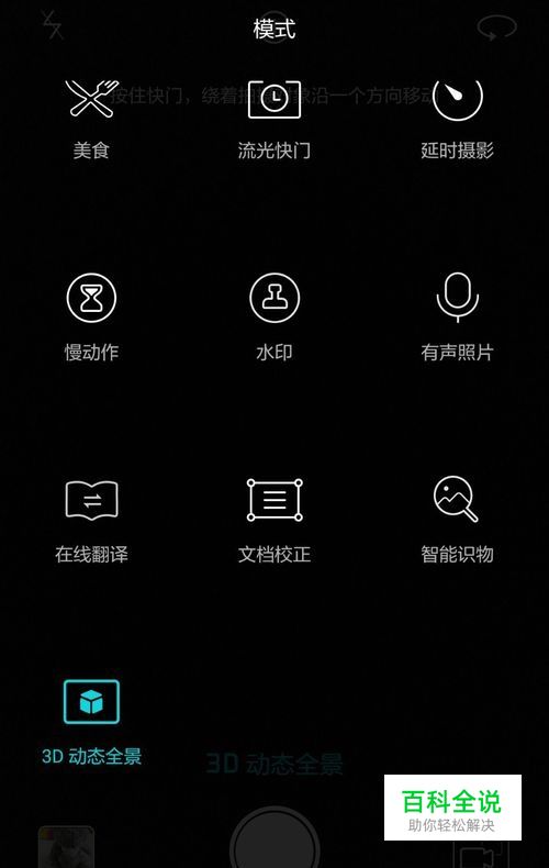 打开相机,向右滑动屏幕,选择3D 动态全景。