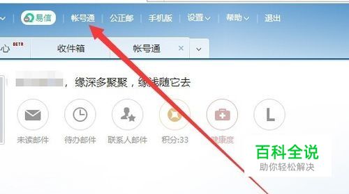 进入网易163邮箱后,点击页面上方的账号通