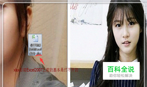 首先,我们举一个例子,我们看到桌面上面的Excel文件的扩展名是 xlsx形式的,这种形式在低版本的Excel是打不开的。