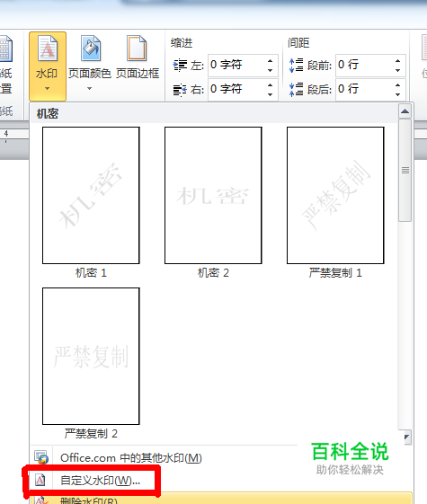 如图,我们首先来添加水印。在页面布局下的页面背景中有水印按钮