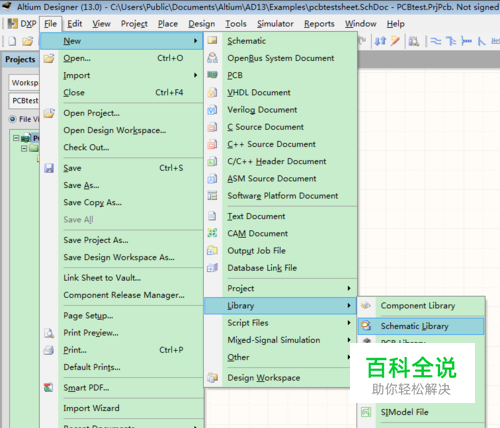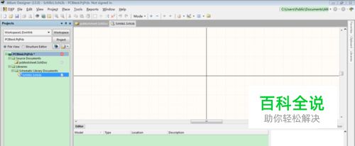 新建原理图库文件。如图所示: 在新建原理图库文件的时候,系统已经自动为该库添加了一个元件,默认名为:Component_1(在SCH library面板可见)。