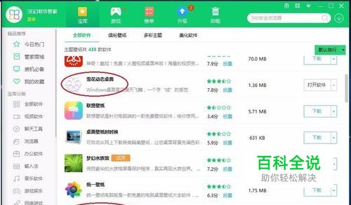打开360软件管家下载雪花动态桌面和飘落的桃花动态桌面来美化自己桌面。(对桌面美化要求不高的人可以省略此步)