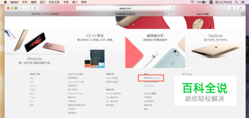 登录苹果官网,进入首页,下滑找到“管理我的Apple ID”点击进入。